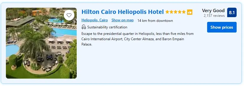 Hilton Cairo Heliopolis Hotel is a wonderful hotel that combines comfort and luxury. With stylish rooms, modern amenities, relaxing spa services and fun activities, it is the right choice for a vacation or business trip. Thanks to its proximity to the city’s attractions, it is an excellent choice for both business and leisure stays.